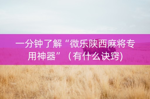 一分钟了解“微乐陕西麻将专用神器”(有什么诀窍)