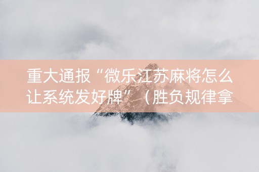 现在人们打棋牌麻将谁不想赢?手机微乐麻将必赢神器但是手机棋牌麻将是这么好赢的吗?在手机上打棋牌麻将想...