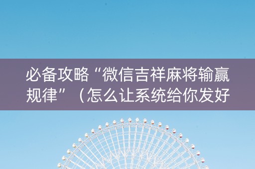 必备攻略“微信吉祥麻将输赢规律”(怎么让系统给你发好牌)
