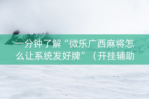 一分钟了解“微乐广西麻将怎么让系统发好牌”(开挂辅助器脚本)